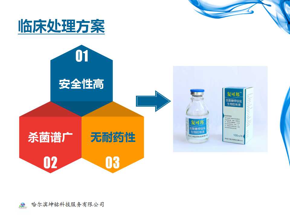 ①复可邦®的主要成分壳聚糖季铵盐其杀菌能力是普通壳聚糖的32倍,有效预防术后感染。